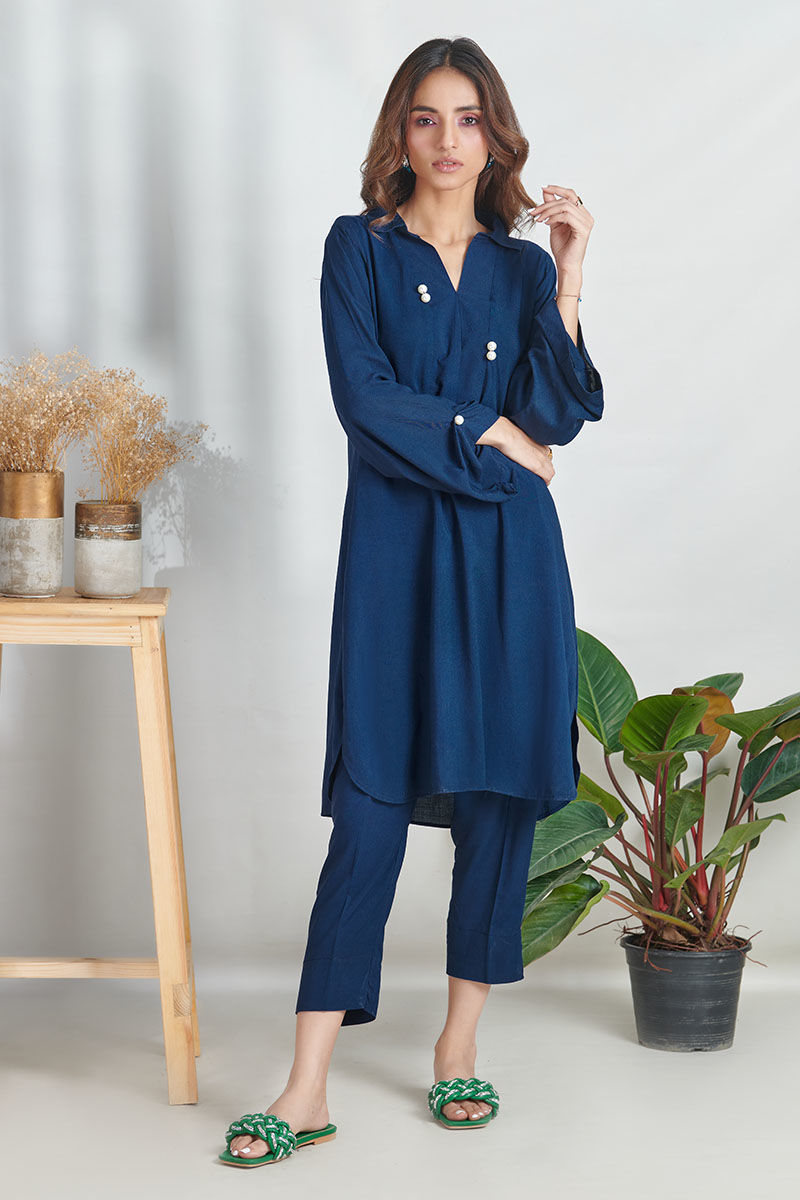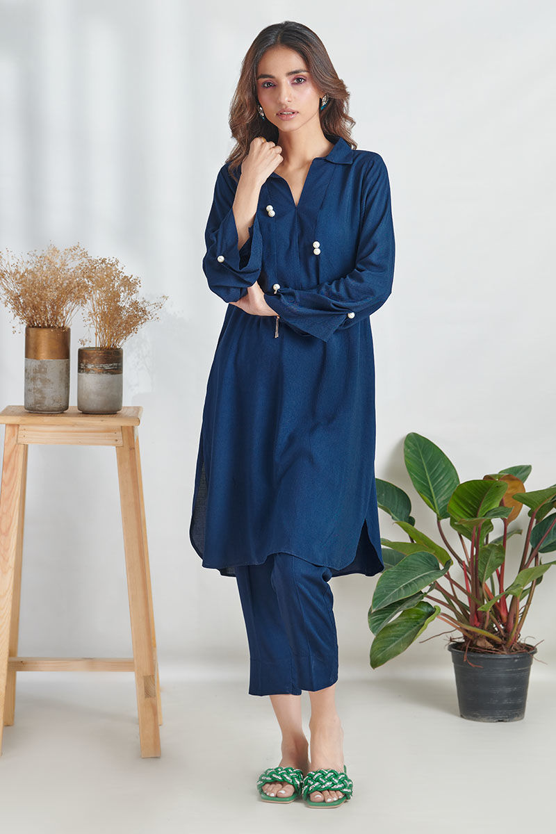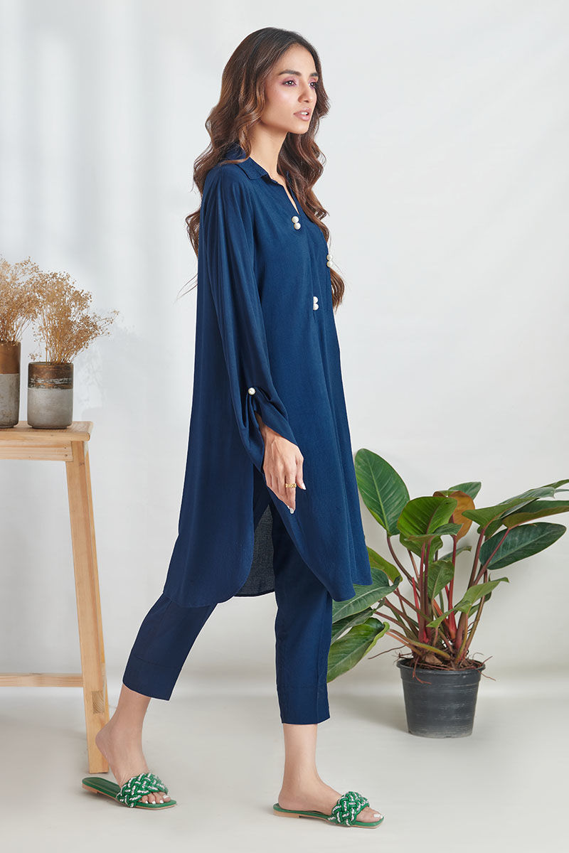 Basic co-ord set an outstanding choice for an exquisite look! A basic set of matching separates in easy breezy fabric of butter linen a perfect pick for this season. Includes Shirt and Trouser