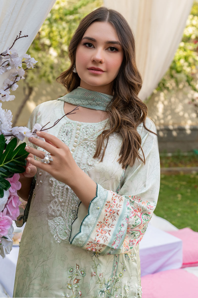 Color: Mint Work Details: Floral Motifs, Embellished Neckline