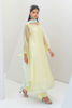 Bright and refreshing, Lemon Love features a lemon yellow A-line long shirt adorned with intricate pintuck detailing and a delicately embroidered cutwork neckline and daaman, accented with soft blue embellishments. Finished with organza trims and statement puffy sleeves tied with charming bows, the look is completed with matching cotton silk culotte pants and a dreamy ombré chiffon dupatta in shades of blue and yellow.