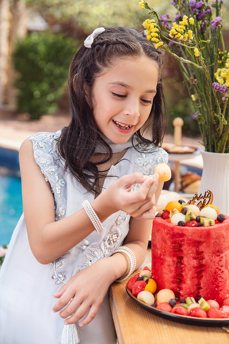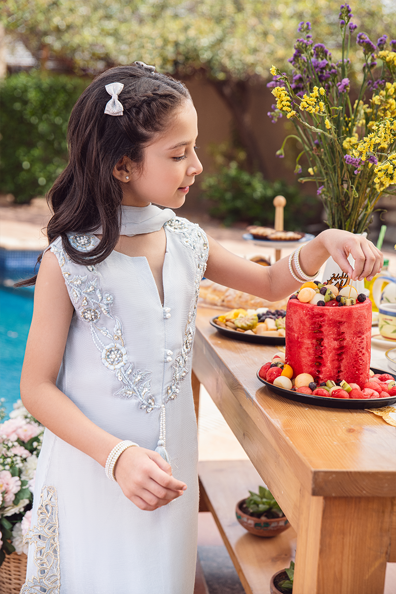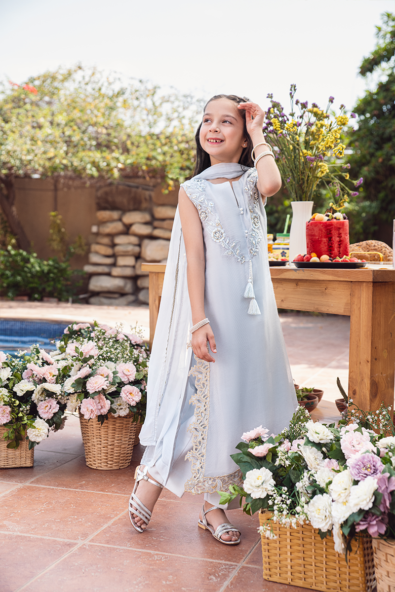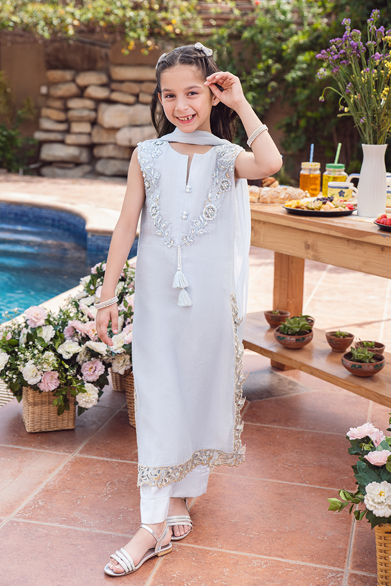 Color: Grey Fabric: Pure Khaadi Net Work Details: Applique, Cutwork and Pearl Detailing