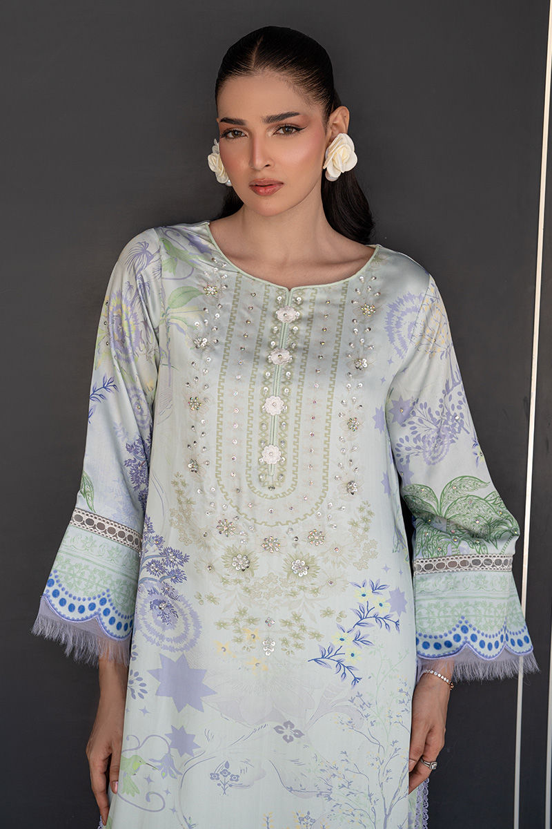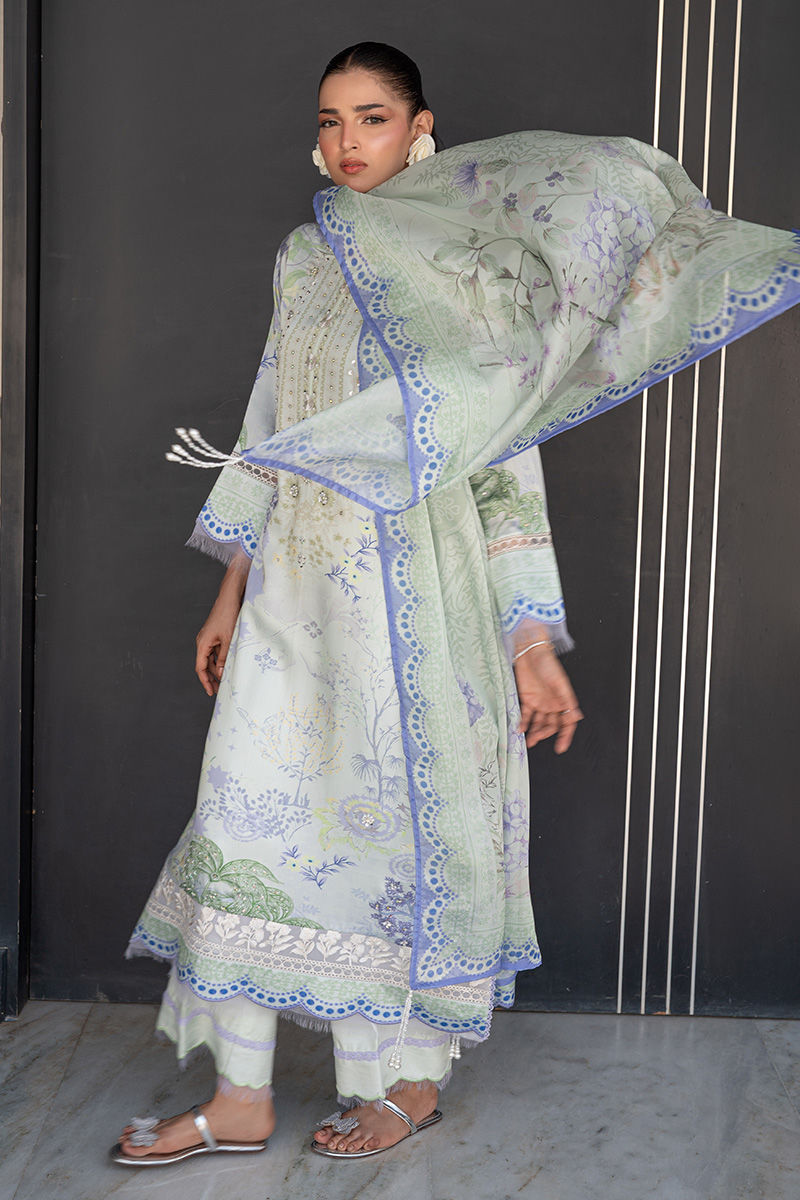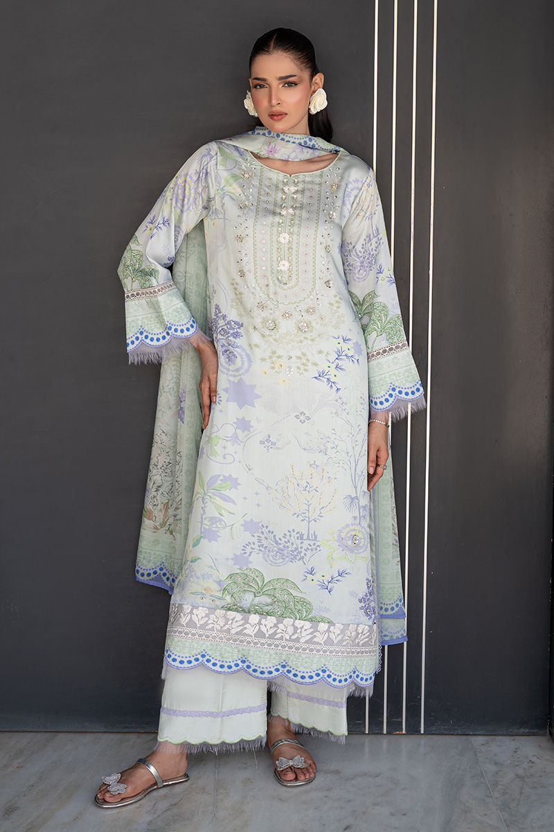 A serene mint canvas adorned with delicate floral motifs in lilac and sage, this mint Mist captures quiet sophistication. The straight-cut kurta features intricate neckline detailing and scalloped borders, paired with a breezy dupatta and tonal pants. Light, airy, and graceful—perfect for daytime gatherings and intimate festivities. Length: 48" to 50"