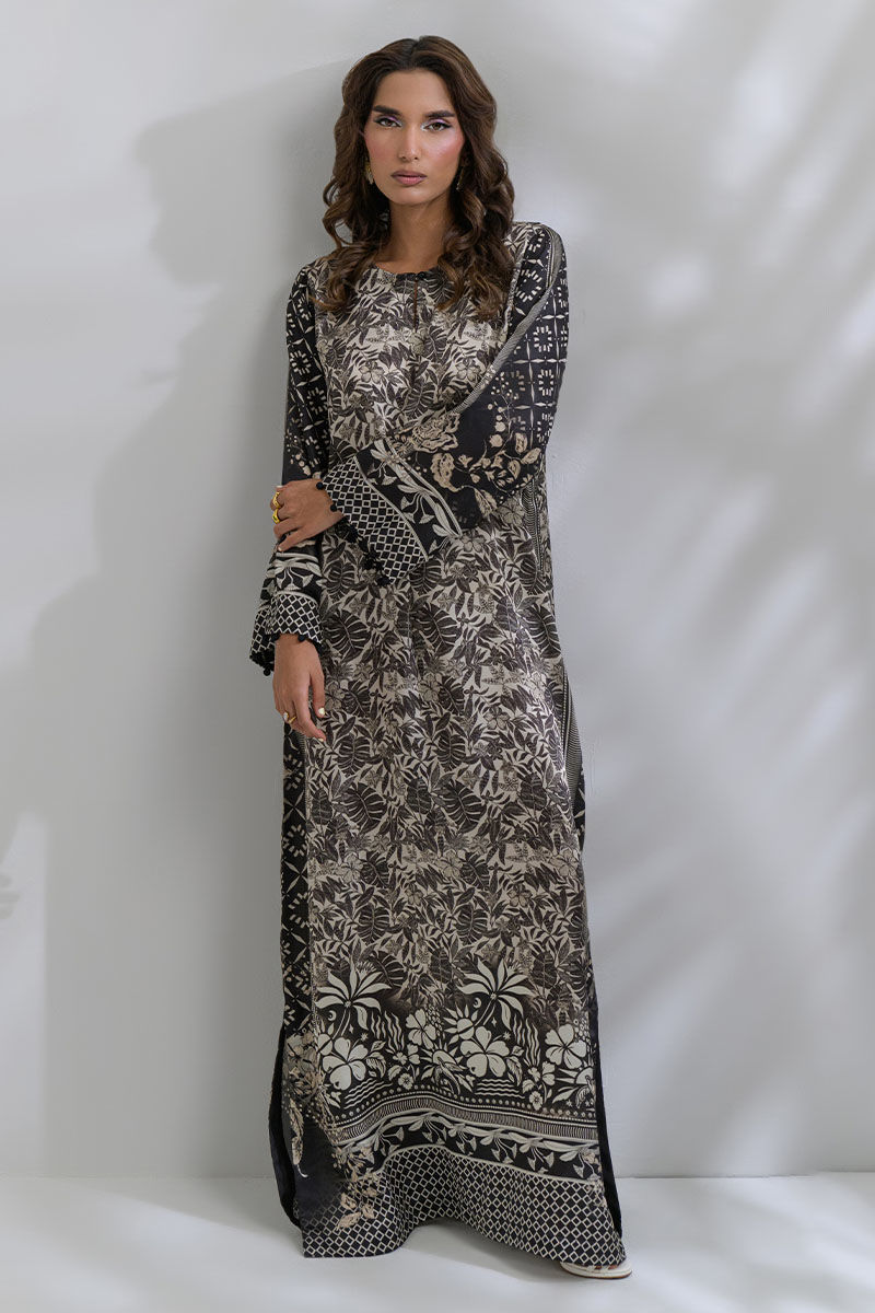 Elevate your everyday style with this elegant breathable shamooz silk kaftan, featuring a beige and black color palette. This is a long anklelength kaftan with flowy bell sleeves which is perfect for casual outings, summer-time movie nights or even breezy dinner dates.