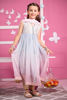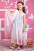Gradient dyed chiffon anarkali shirt with screen printed detailing. Comes with gold jamawar pants.
