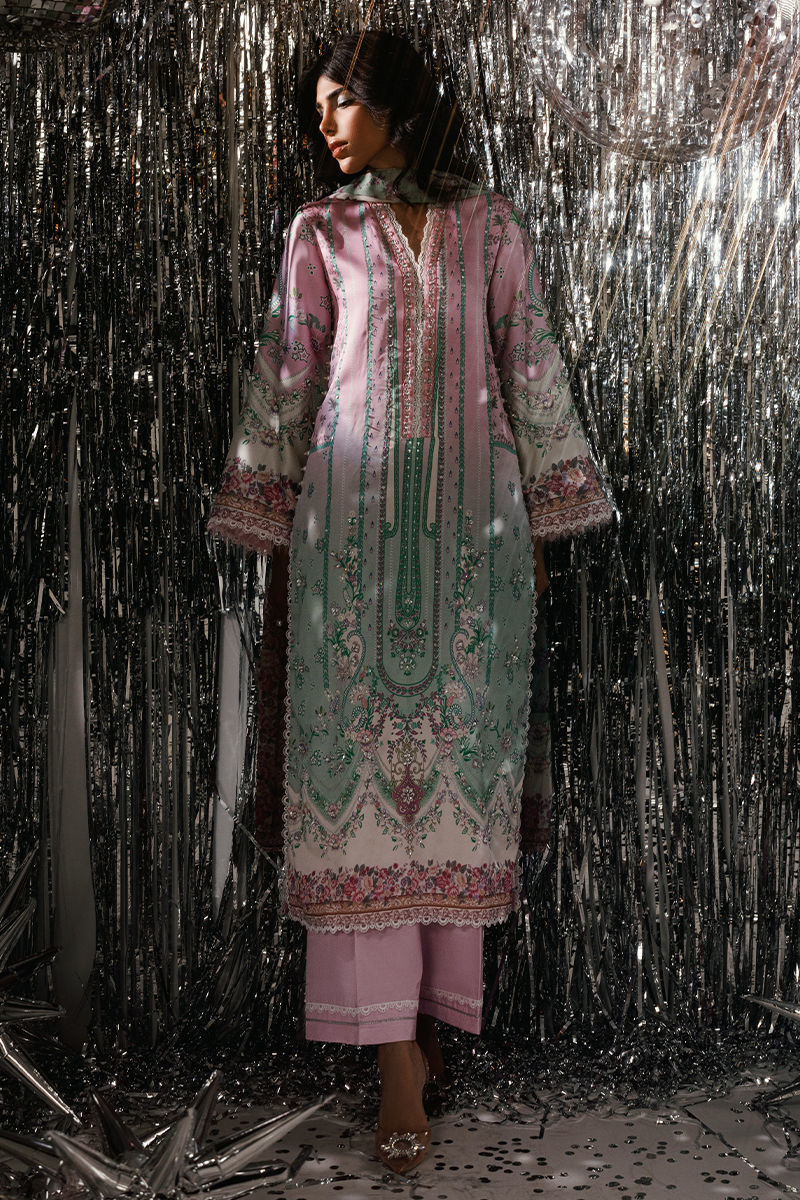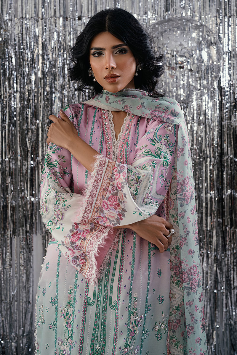 Soft yet striking, Mint Blush Harmony blends two serene shades—mint and light pink—into a delicate composition of elegance. The shirt features intricate handwork and embellishments, paired with a tailored trouser and a digital print dupatta that completes the look with a touch of artistry and refinement. Shirt Length: 45 TO 47 INCHES